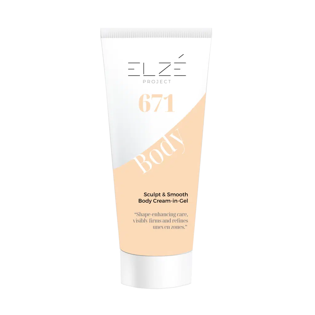 Η 671 Sculpt & Smooth Body Cream-in-Gel της ELZE Project βελτιώνει την υφή του δέρματος, ενισχύει τη σφριγηλότητα και χαρίζει πιο σμιλεμένη όψη. Με εκχυλίσματα μικροφυκών, παπαρούνας και βιταμίνη Ε , συσφίγγει και λειαίνει ορατά την επιδερμίδα.